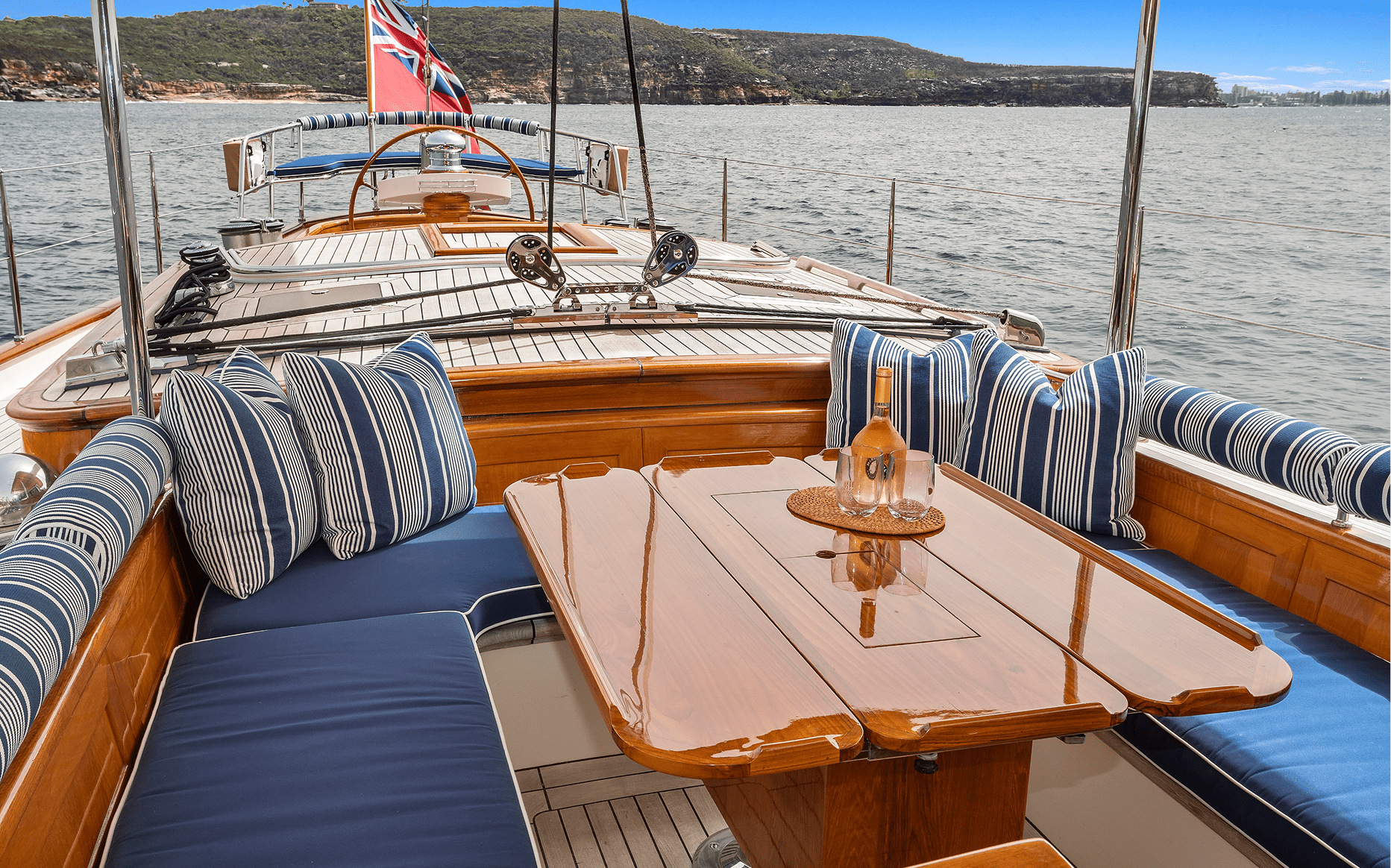 It seems that Drumfire has really found her place in the world Down Under. “Sat over in Palma in the shadow of the cathedral, the boat got lost against the bigger ones,” says Captain Neil. “Then we got to Sydney and she was the star – everyone wanted to know about her.”