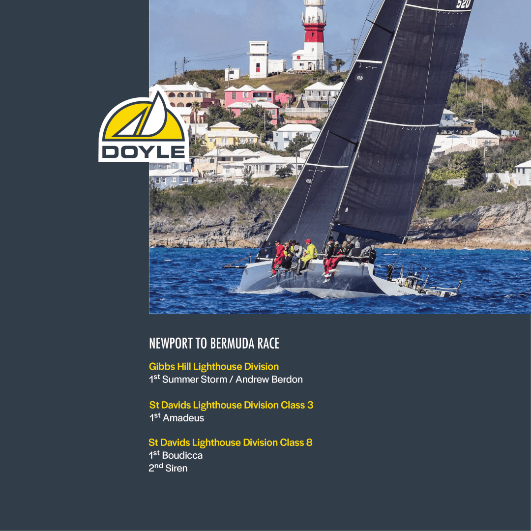 Following on with the success stories was the NEWPORT-BERMUDA RACE which saw Doyle-powered yachts claim first in three of the major divisions.